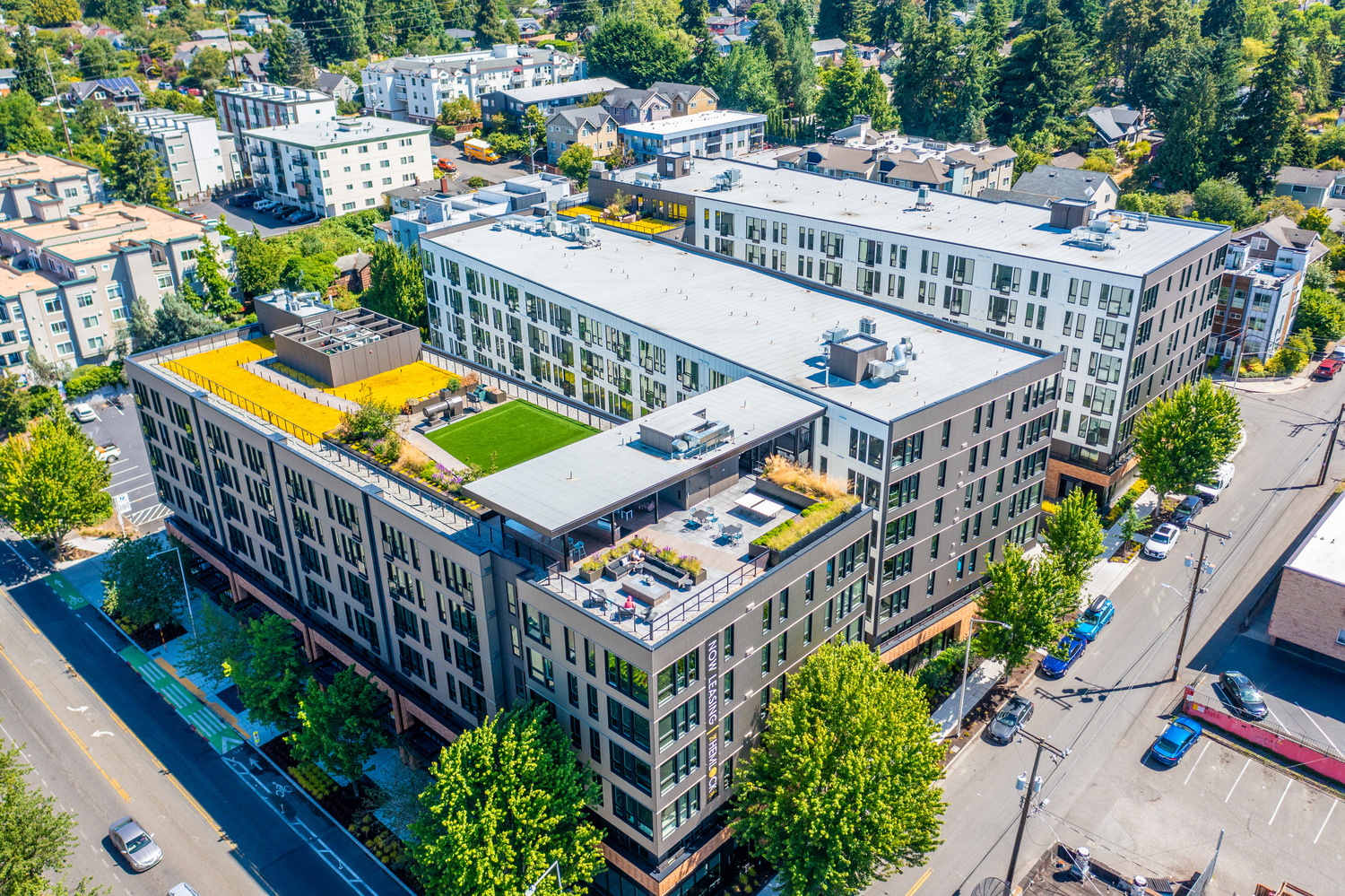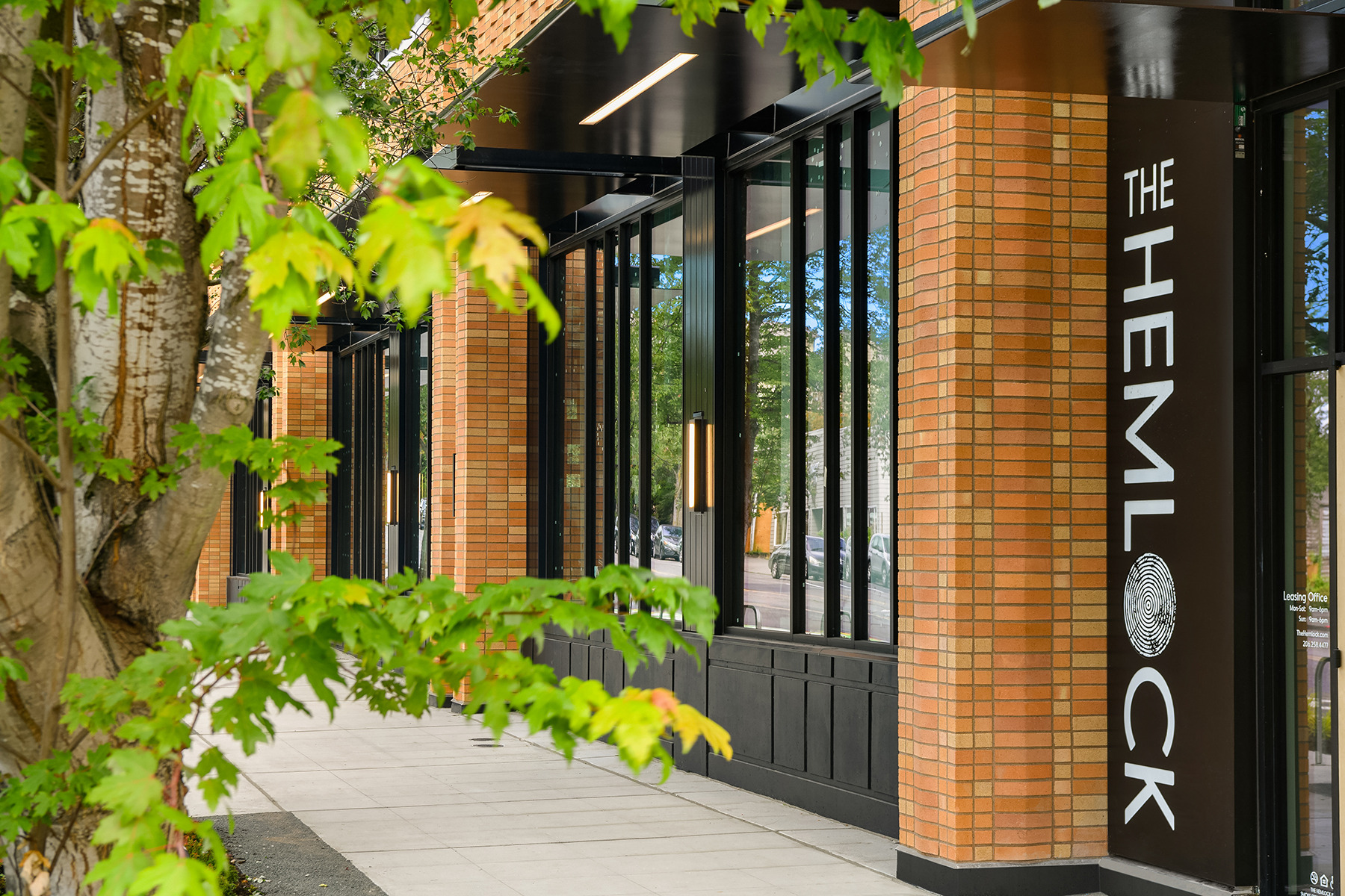 Situated in an urban neighborhood the Hemlock is a mixed-use, multifamily development at the transition point between Greenwood’s commercial and residential districts. The design team made it a priority to respond to community needs, reflect local character, and address the physical challenges of a steeply sloping site.